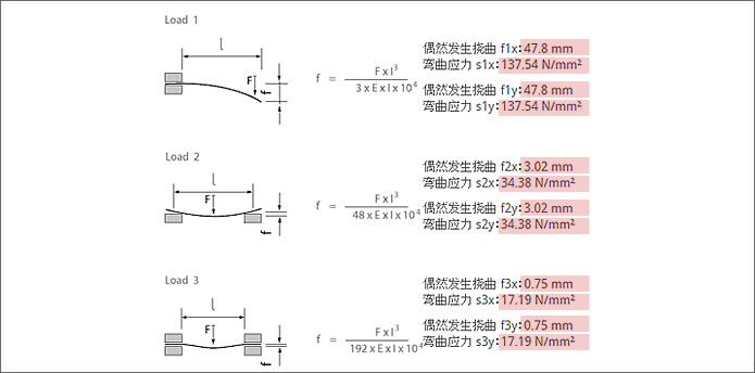 载荷方案 2:两端都不固定的横梁,受力后弯曲变形。当然,载荷方案中的的水平型材与垂直型材间没有螺栓连接,而仅仅在拐角点接触,这只是一种理想情况而不是现实的设计。但是,载荷方案 2 可以作为计算的依据,在计算挠曲(不包括固端力矩)时涵盖其他的安全系数。